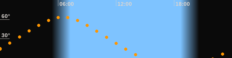 Höchster Stand (Kulmination)06:29 Uhr (h = 63,6°)