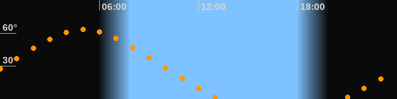 Höchster Stand (Kulmination)05:02 Uhr (h = 63,6°)