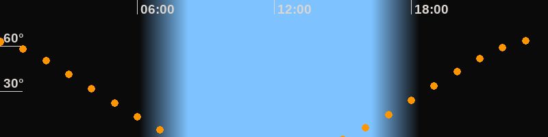 Höchster Stand (Kulmination)23:23 Uhr (h = 63,6°)