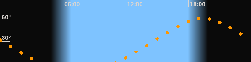 Höchster Stand (Kulmination)19:23 Uhr (h = 63,6°)