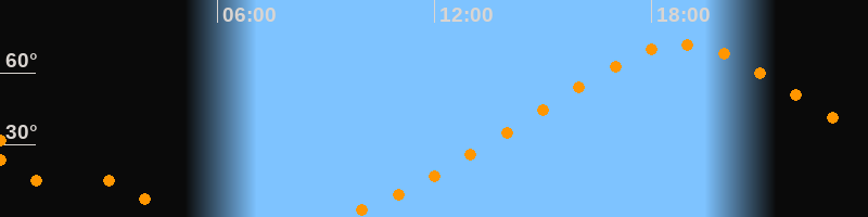 Höchster Stand (Kulmination)18:50 Uhr (h = 71,8°)