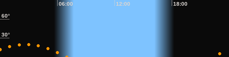 Aufgang22:13 Uhr im Südosten (αAz = 120,6°)