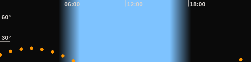 Aufgang22:27 Uhr im Südosten (αAz = 120,6°)