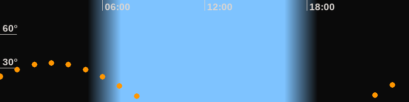 Höchster Stand (Kulmination)02:59 Uhr (h = 34,7°)