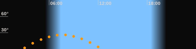 Höchster Stand (Kulmination)07:36 Uhr (h = 26,1°)