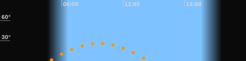 Höchster Stand (Kulmination)09:38 Uhr (h = 26,1°)