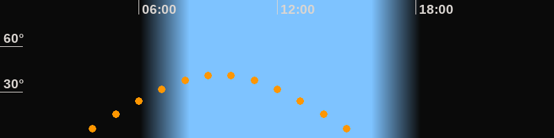 Höchster Stand (Kulmination)09:30 Uhr (h = 41,4°)