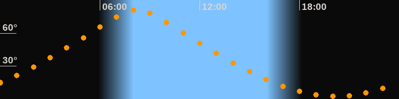 | Höchster Stand (Kulmination) | 08:14 Uhr (h = 81,3°) |