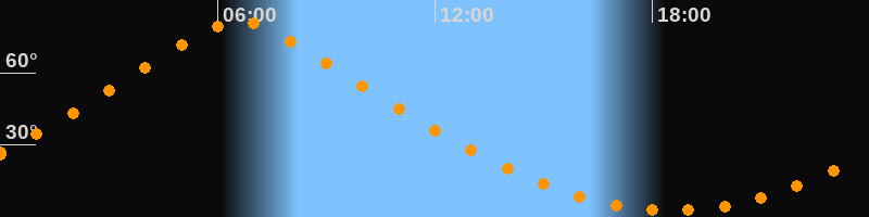 | Höchster Stand (Kulmination) | 06:35 Uhr (h = 81,3°) |