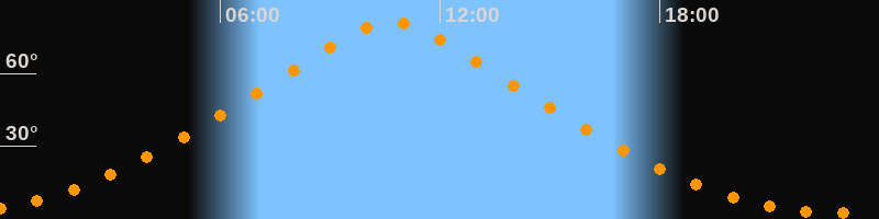 | Höchster Stand (Kulmination) | 10:40 Uhr (h = 81,3°) |