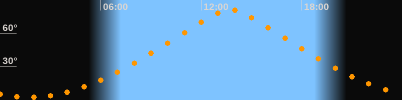 | Höchster Stand (Kulmination) | 13:43 Uhr (h = 81,3°) |