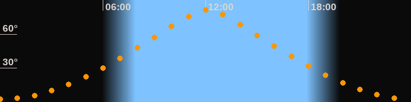 | Höchster Stand (Kulmination) | 12:05 Uhr (h = 81,3°) |