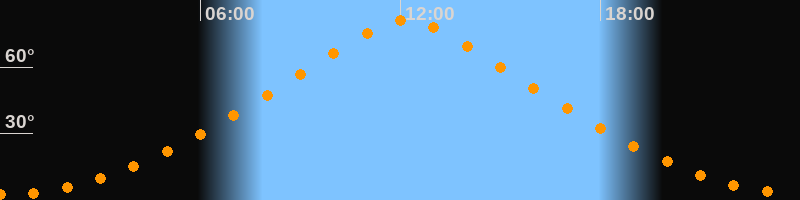 | Höchster Stand (Kulmination) | 12:10 Uhr (h = 81,3°) |