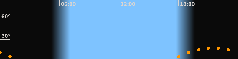 Untergang01:38 Uhr im Südwesten (αAz = 234,3°)
