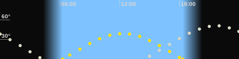 Sonnenaufgang06:16 Uhr im Osten (αAz = 89.9°)