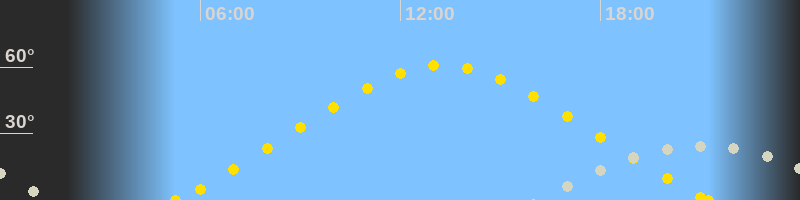 | Höchster Sonnenstand (Kulmination) | 13:16 Uhr (h = 60.8°) |