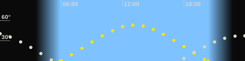 | Höchster Sonnenstand (Kulmination) | 13:07 Uhr (h = 53.3°) |