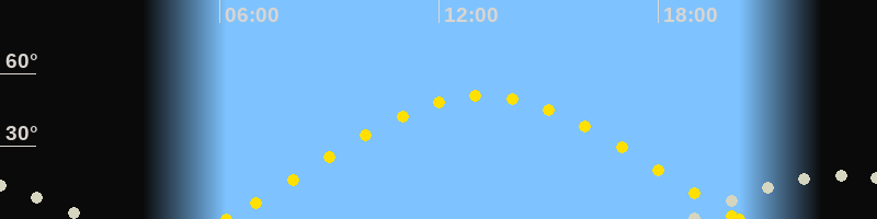 | Sonnenaufgang | 06:10 Uhr im Osten (αAz = 70.6°) |
