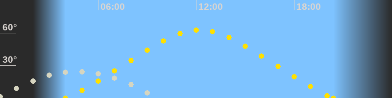 | Höchster Sonnenstand (Kulmination) | 12:12 Uhr (h = 62.7°) |