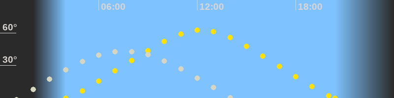 | Höchster Sonnenstand (Kulmination) | 12:13 Uhr (h = 62.6°) |