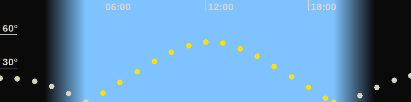 | Sonnenuntergang | 19:28 Uhr im Nordwesten (αAz = 292.9°) |