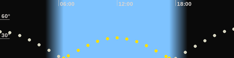 | Höchster Sonnenstand (Kulmination) | 11:56 Uhr (h = 31.3°) |