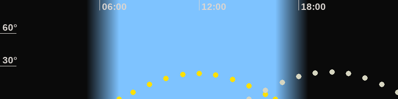 | Höchster Sonnenstand (Kulmination) | 11:53 Uhr (h = 23.5°) |