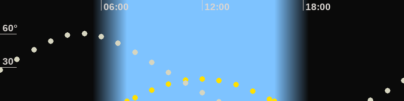 | Höchster Sonnenstand (Kulmination) | 11:55 Uhr (h = 20°) |