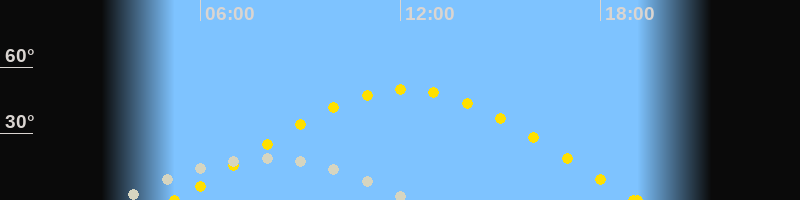 | Sonnenaufgang | 05:14 Uhr im Osten (αAz = 72.7°) |