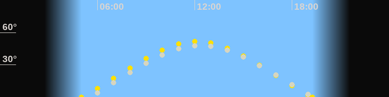 | Sonnenaufgang | 05:01 Uhr im Osten (αAz = 69.3°) |