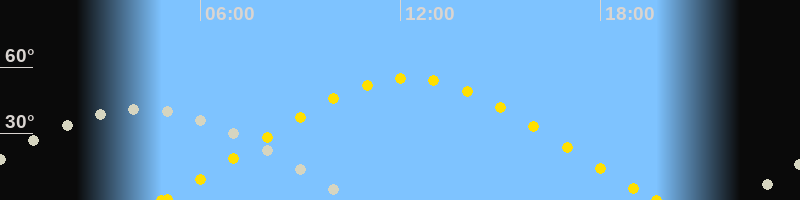 | Höchster Sonnenstand (Kulmination) | 12:15 Uhr (h = 55.1°) |