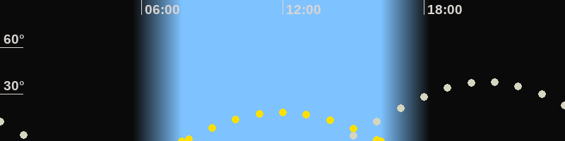 | Höchster Sonnenstand (Kulmination) | 11:57 Uhr (h = 18.5°) |