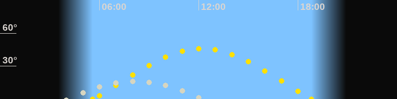| Sonnenaufgang | 05:35 Uhr im Osten (αAz = 78.7°) |