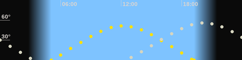 | Sonnenaufgang | 05:04 Uhr im Osten (αAz = 70°) |