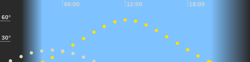 | Höchster Sonnenstand (Kulmination) | 12:08 Uhr (h = 61.3°) |