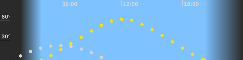 | Höchster Sonnenstand (Kulmination) | 12:08 Uhr (h = 61.4°) |