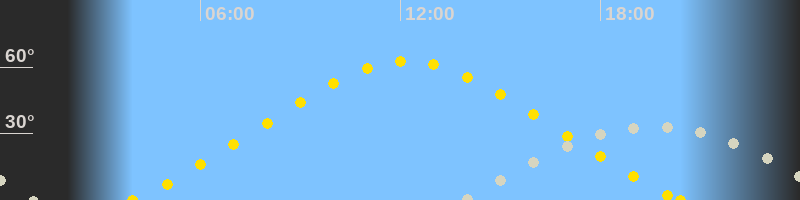 | Höchster Sonnenstand (Kulmination) | 12:11 Uhr (h = 62.7°) |