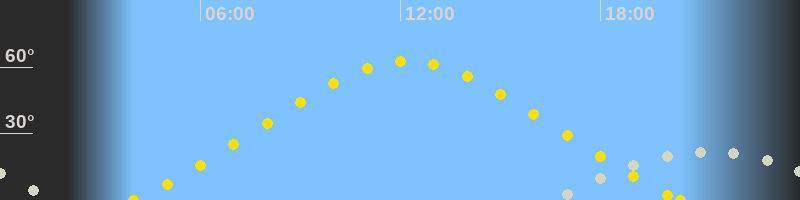 | Höchster Sonnenstand (Kulmination) | 12:12 Uhr (h = 62.7°) |