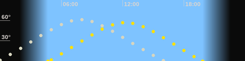 | Höchster Stand (Kulmination) | 07:48 Uhr (h=61°) |