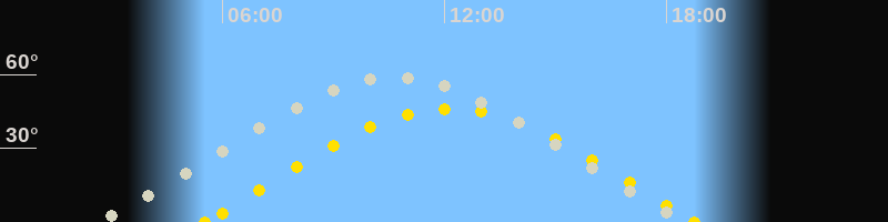 | Sonnenaufgang | 05:31 Uhr im Osten (αAz = 78.3°) |