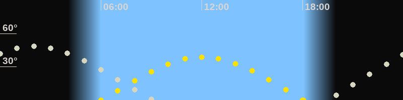 | Sonnenaufgang | 06:00 Uhr im Osten (αAz = 89.8°) |