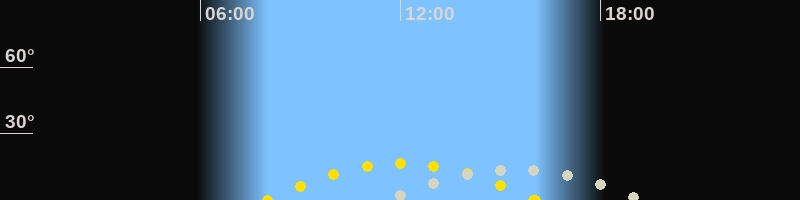 | Sonnenaufgang | 08:00 Uhr im Südosten (αAz = 126.7°) |