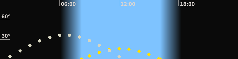 | Höchster Sonnenstand (Kulmination) | 12:11 Uhr (h = 16°) |