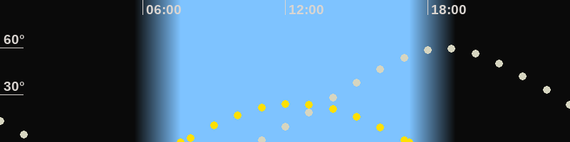 | Höchster Stand (Kulmination) | 18:40 Uhr (h=59.6°) |