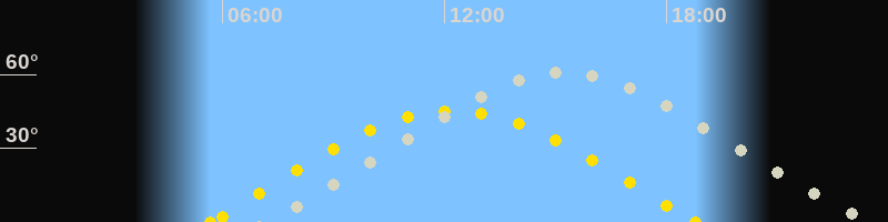 | Sonnenaufgang | 05:40 Uhr im Osten (αAz = 80.1°) |