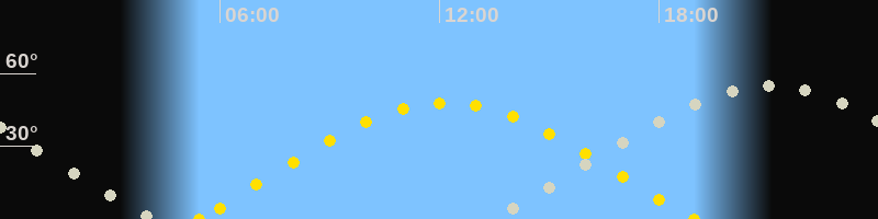 Höchster Sonnenstand (Kulmination)12:11 Uhr (h = 47.8°)