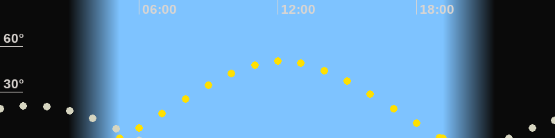 | Sonnenaufgang | 05:10 Uhr im Osten (αAz = 71.8°) |