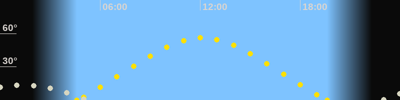 | Höchster Sonnenstand (Kulmination) | 12:06 Uhr (h = 56.2°) |