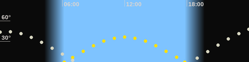 Höchster Sonnenstand (Kulmination)12:00 Uhr (h = 36.3°)