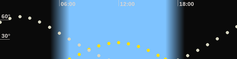 | Höchster Sonnenstand (Kulmination) | 11:53 Uhr (h = 25°) |